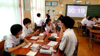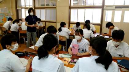3年生国語科で「ビブリオバトル」を開催中。おススメ本の紹介を通して、みんなが読みたい本を投票します。本の魅力に加え、紹介者のプレゼンテーション力も試されます。さて誰がクラス代表に選ばれるでしょう?
