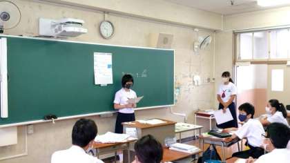 2年生理科の授業で自由研究発表会を開催中。自由にテーマを設定し、学んだことを発表します。よく飛ぶ紙ヒコーキやアルコールインクアートなど興味深いテーマが盛りだくさんですね。