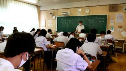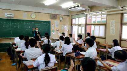 1年生で等式の性質を活用し、計算問題を解いています。皆さん多くの問題に取り組んだので、少し疲れ気味。リフレッシュをかねて、じゃんけん大会が始まりました。わずかな時間ですが、上手く気分転換できましたか?
