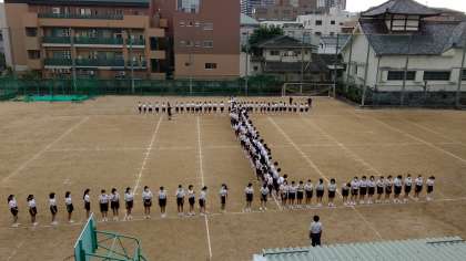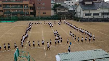 6限に3年生も体育大会に向け練習に励んでいます。先日の体育館の練習から、今日は運動場に場所を変えて隊形や動きを確認しています。隊形が変わり覚えることがたくさんありますが、少しずつ覚えていってくださいね。