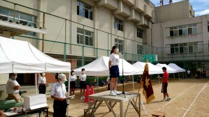 開会式の練習が続きます。競技上の注意や選手宣誓は3年生が担当します。大会当日もハツラツとしたスピーチをお願いします!