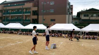 個人競技の予行が始まりました。各レースの順番やレースで一緒に走る人を確認します。当日もベストを尽くしましょう。