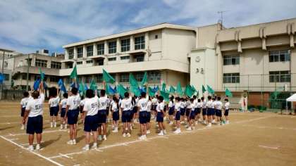 3年生の皆さんが学年演技の練習中。本番までまだ2週間ありますが、修学旅行や定期テストがあり、練習時間が限られているそう。数少ない機会を活かして全体のパフォーマンスを高めています。皆さんの美しい演技を楽しみにしています。