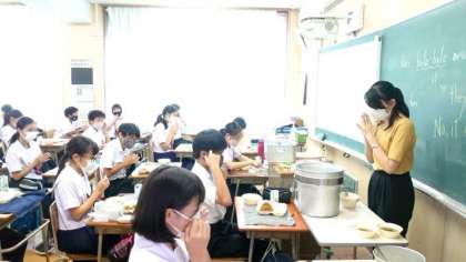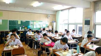 昼休みに入り、皆さん楽しみの給食の時間です。今日のメニューはタコライス。たくさんいただいてくださいね。来週月曜日は給食調理校の味原小学校さんが代休のため、中学校の給食はありません。お昼のご準備をお願いします。