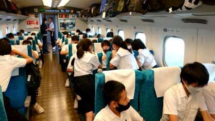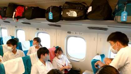 姫路駅に到着しました。車内はお菓子の香りに満ちています。