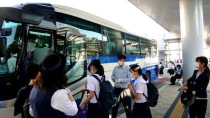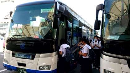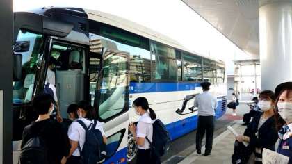 クラス毎にバスに分乗し、平和記念公園に向かいます。