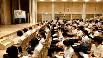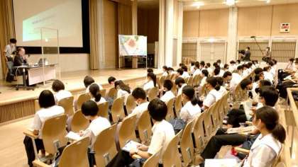 語り部の方は、原爆投下当時、中学2年生だったそうです。実際に体験されたお話に皆さん聞き入っています。