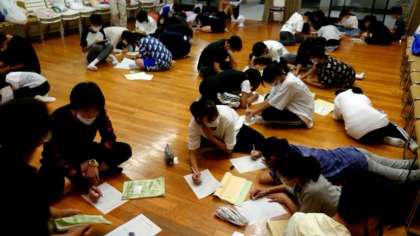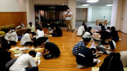 4組の皆さんも、平和学習のレポートを作成中。皆さん、深く心に残った出来事をしっかりと書き留めています。