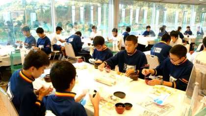 今朝のメニューは地元食材を使ったハンバーガーがあるそうです。
