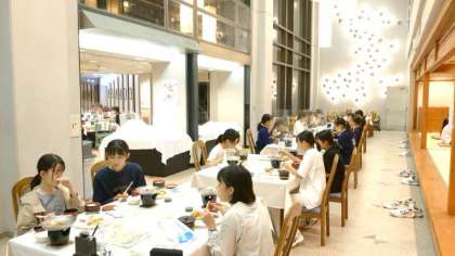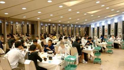 皆さん、楽しくいただいています。夕食後はレクリエーション大会です。