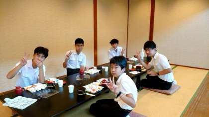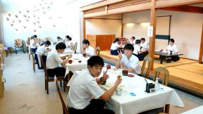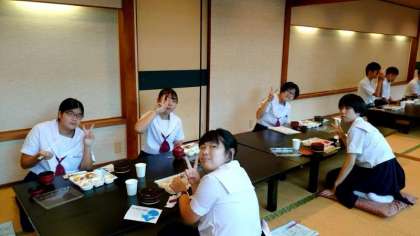 お昼の宮島はグループ毎の食事なので、みんなでいただくのはこれが最後。和やかにいただいています。