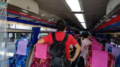バスに乗り込み、洞川に向かいます。バスが出発しました。