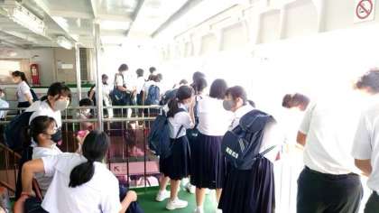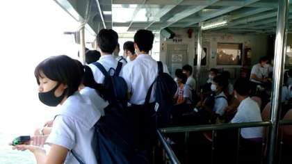 船からの景色を楽しむ人、椅子に座ってくつろぐ人、さまざまです。