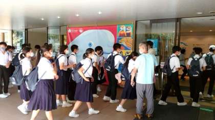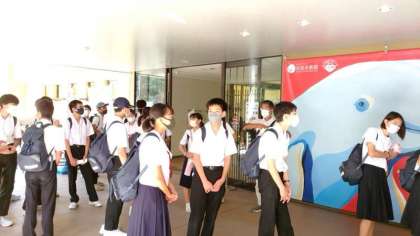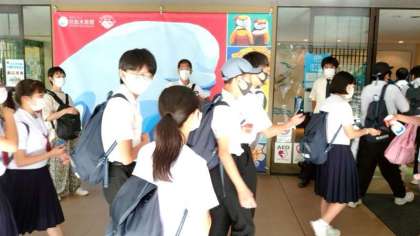 宮島水族館に入ります。ここから班活動スタートです。