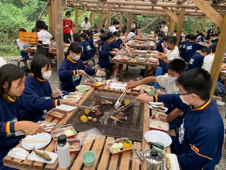 みんなで協力してお肉を焼きます。