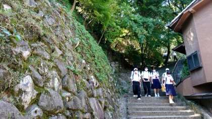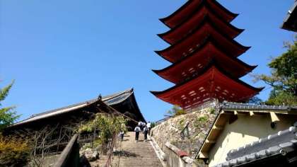 宮島の史跡を巡るグループもいるようですね。