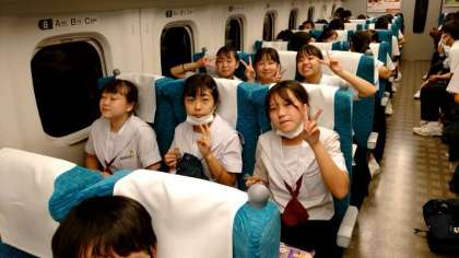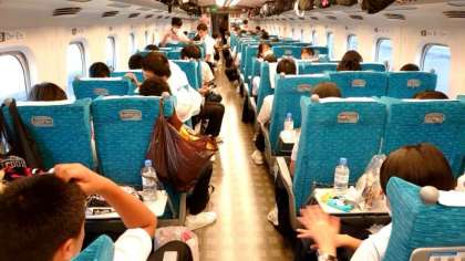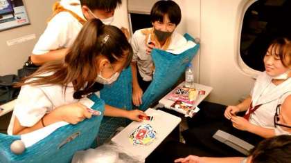 まもなく岡山駅に到着します。車内はゲーム&おやつタイムです。