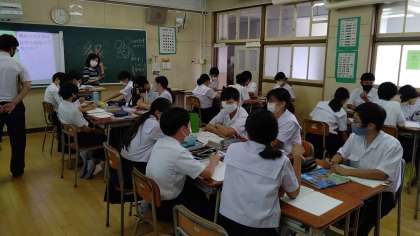 1年生の社会科で奈良時代の政治の仕組みや制度を学習しました。土地制度が時代とともに変わっていく中で、国家にどのような影響を与えたのか、個々に考え、その後、班で考えをまとめました。色々な考えを聞くことができ、考えが深まりましたね。