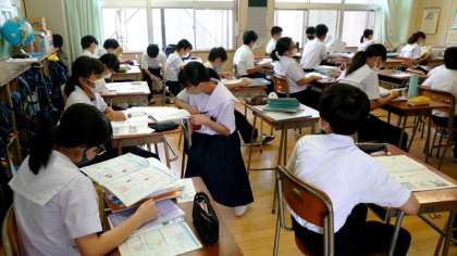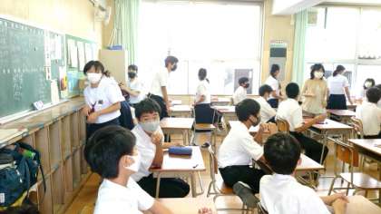 まもなく1時間目「社会」のテストが始まります。テスト前の教室は最後の追い込みに頑張る姿がみられます。資料集やノートとにらめっこする人や、今覚えた語句を忘れないよう繰り返しつぶやく人などさまざまです。