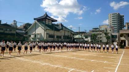 中間テストが無事終わり、3年生が運動場に集まってきました。明日挙行される体育大会 3年学年演技の最終リハーサルに取り組みます。「最高の演技を見せよう!」と体育委員さんがみんなの気持ちを鼓舞します。