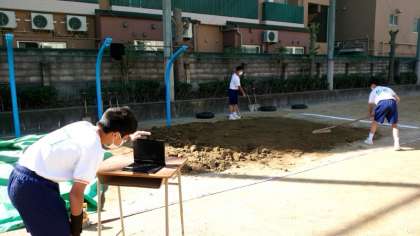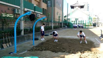 (上から)走り幅跳びに取り組むグループです