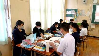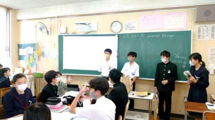 2年生英語科で教科書の英文を発表します。ユニバーサルデザインの特徴に関する英文をグループで読み上げます。意味を理解しないと気持ちのこもった発表になりません。皆さん、上手くできましたか?