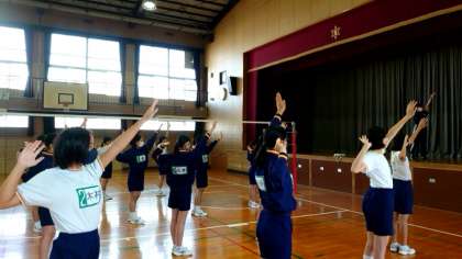 体育科の教育実習に来られている先生の研究授業が行われました。実習期間中は「バレーボール」を中心に指導してくださいました。今日の研究授業も先生のハツラツとした動きが印象に残る授業でした。