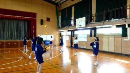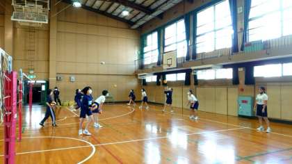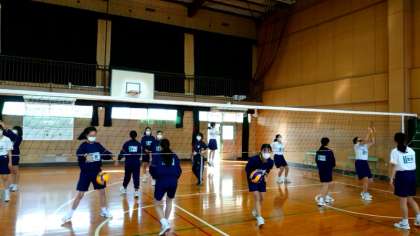 研究授業前半は、ペアになってパス練習から。次第にコツがつかめてきましたか?後半はスパイクの練習です。トスに合わせて、助走→ジャンプ→スパイクとたくさんの動きが入るので難しいですね。