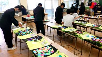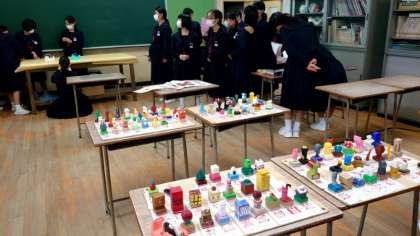 各教室の作品展示が着々と進んでいます。美術室では各学年で制作した作品がずらりと並びます。毎年、皆さんのアイディアあふれるユニークな作品は私たちの目を楽しませてくれますね。