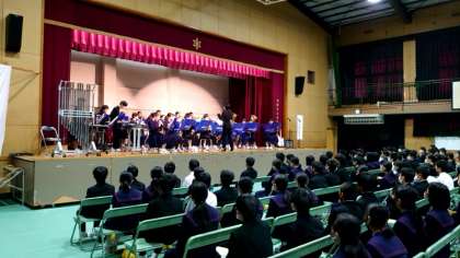 舞台発表の部が始まりました。オープニングは吹奏楽部の演奏から。全校生徒の前で演奏する久しぶりの機会です。演者の皆さんの心のこもった演奏がステキです。
