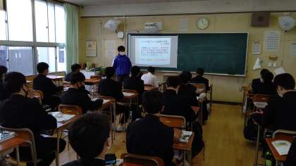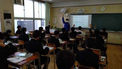 1年生の保健の授業で健康について学び考えました。寿命には平均寿命と健康寿命の2種類があるそうですね。途中で発表があったり、平均寿命やランキングを予想したりと、皆で考える時間がたくさんありました。