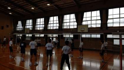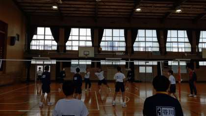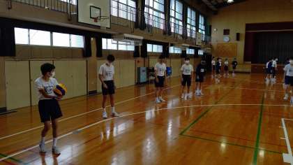 3年生の体育は体育館で「バレーボール」を行っています。サーブの後、ラリーが何回続くか数えながら、ゲーム形式でプレーを行っています。点が入るとチーム内で拍手が沸き上がります。皆さんラリーは何回続きましたか?