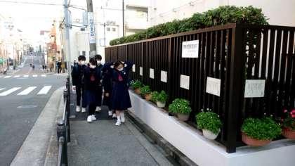 (上から)今朝も皆さん元気に登校してきました