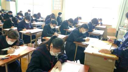 テスト2時間目は英語です。リスニングテストでは、スピーカーから流れる問題に、皆さん集中して聴き取っていました。時間配分に気をつけて、ケアレスミスがないように頑張てくださいね。