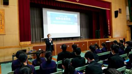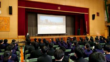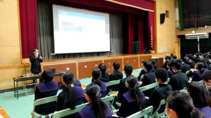 公立高校の先生方を招いて説明会を開催しました。今年は「桜和(おうわ)・柴島・高津・都島工業」の4校に来ていただき、各校の特色についてお話をうかがいました。