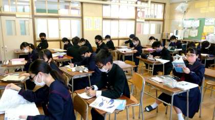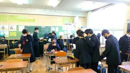 テスト最終日の朝を迎えました。今日は「数学・理科・音楽」の3教科。テスト開始直前の教室では皆さん静かに学習中。良い雰囲気を自分たちで作っているのが良いですね。