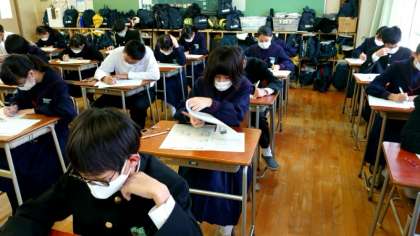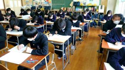期末テスト9教科目「音楽」の試験が始まりました。授業で演奏した「お箏」の問題や体育大会で歌った「生徒会歌」など幅広く出題されているようです。テスト終了まであとわずか。最後まで頑張ってください!