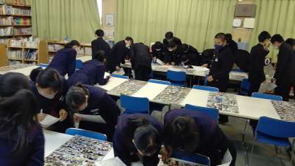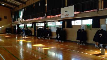写真の展示はAL教室・図書室・体育館の3会場に分けて掲示されています。3会場を巡りながら写真を選びます。皆さん購入用の袋に購入する写真番号をたくさん記入していましたね。時間いっぱい使って選んでくださいね。
