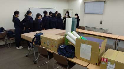 高津中の展示会場へ