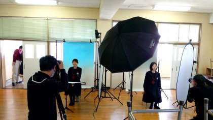スムーズに個人写真の撮影がすすんでいます。卒業アルバム用はニッコリ笑顔で、入試の願書用は、キリっと凛々(りり)しく写ります。皆さん仕上がりが楽しみですね。