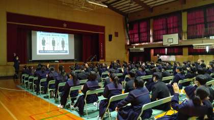 参加型の学ぶ場面もありました みんなで手を挙げて考えています