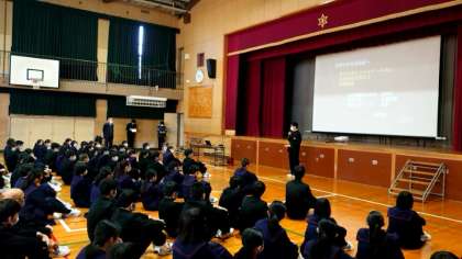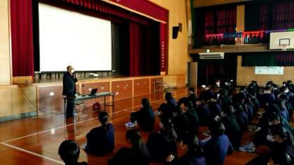 3年生がゲストティーチャーを迎え、性に関わる疾病についてお話を聴いています。東京大学名誉教授で病院の院長も務めておられるとのこと。今日の講話のため、大阪まで来てくださいました。遠路はるばるありがとうございます。