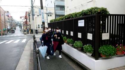 (上から)皆さん傘を手に登校してきました