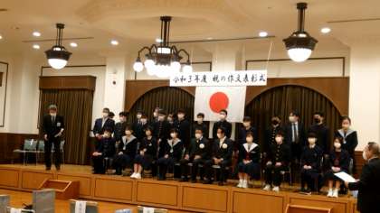 「令和3年度 中学生税の作文」で、本校生徒が「天王寺区長賞」を受賞しました。昨日、表彰式が催され、加藤区長から表彰状を授与されました。税金は私たちが豊かに安心して暮らすために必要なものですね。