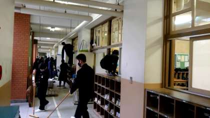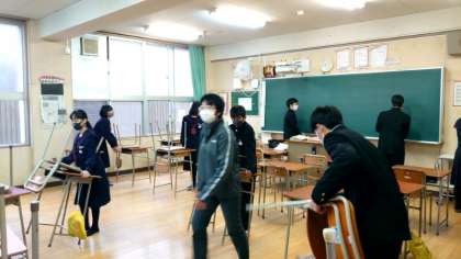 3学期が始まりました。明日から授業も始まります。1,2年の皆さんは明日からの活動に備えて、校舎内を大清掃中。すみずみまで美しく整えて、気持ちよく学習に励みましょう。