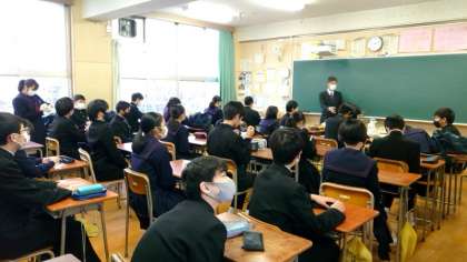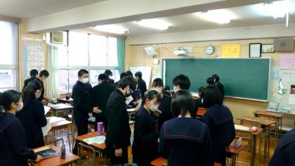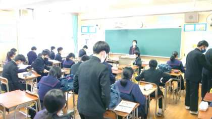3年生の教室では「冬休みの宿題」の回収中。皆さん、各教科から出された宿題を机に用意し、手際よく集めています。明日は「3年生 第5回実力テスト」を予定しています。冬休みの学習の成果を発揮してくださいね。