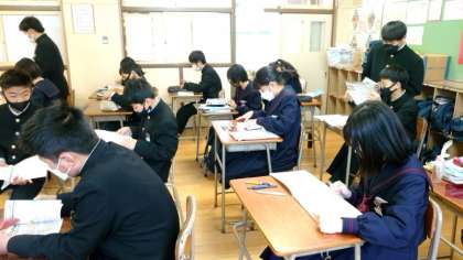 チャレンジテストがまもなく始まります。1年生の教室では、先生からマークシートの記入方法や個人識別用QRコード(シール)の貼り付けを教わっています。校内テストとは少し勝手が違うので、気をつけてくださいね。