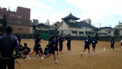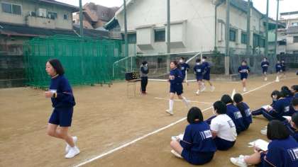 3年生の皆さんが持久走に挑戦中。今日は12分間走り続けて、走った距離を記録します。途中でバテてしまわないよう、ペースを考えながらの12分間。友達の声援を背に受け、心地よい汗を流していました。
