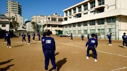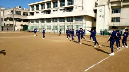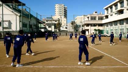 3年生男子体育でドッヂボールの試合中。今日はクラス対抗戦で行われます。参加人数が多いのでボールを2つ用意してゲームスタート。2方向からボールが飛んでくるので、気が抜けません。皆さん童心に返って、ゲームを楽しんでいました。