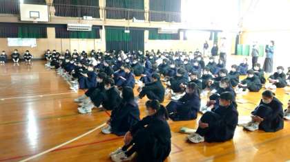 発表が始まりました。高校の場所はもとより、名前の由来まで調べているグループもありました。特別授業では、中学校で習わない内容が盛りだくさんで興味深かったようですね。皆さんが作成した資料(データ)もいろんな工夫があって、とても面白かったです。